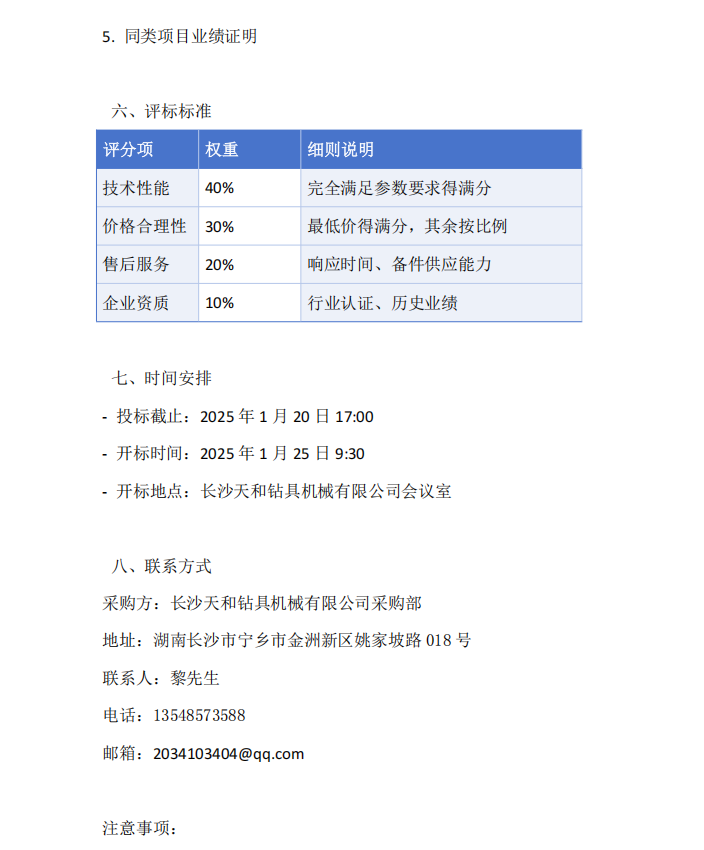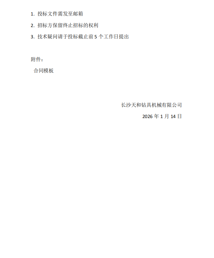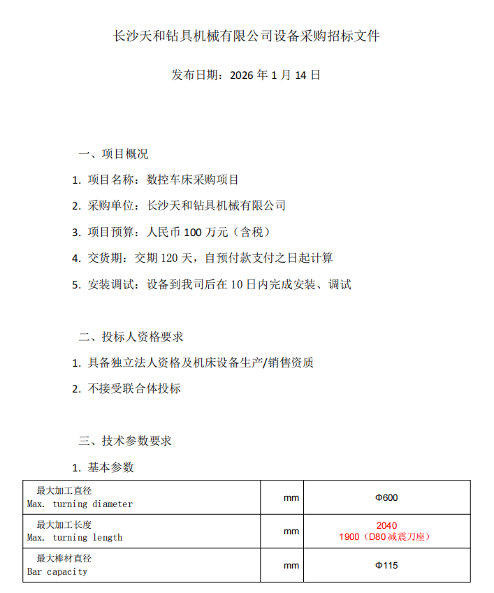 长沙天和钻具机械有限公司设备招标文件数控车床采购项目
