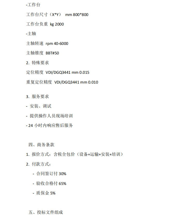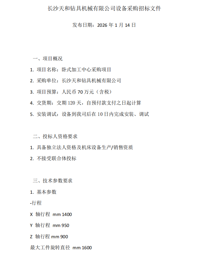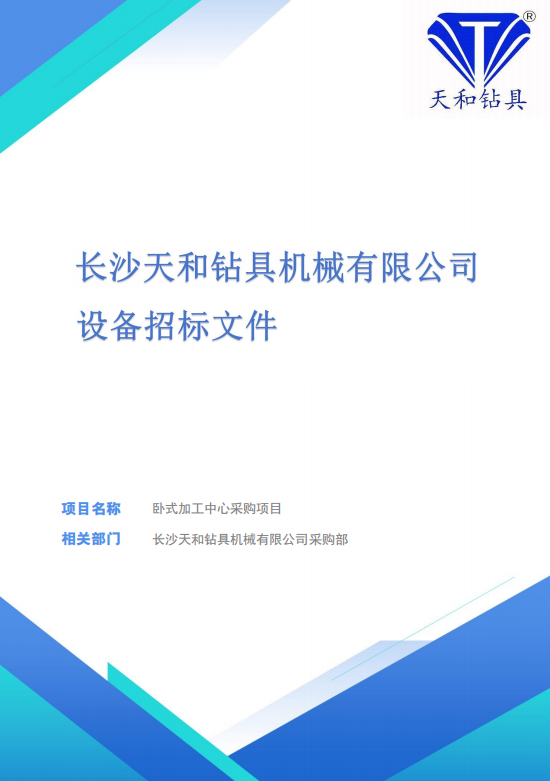 长沙天和钻具机械有限公司设备采购招标文件卧式加工中心采购项目