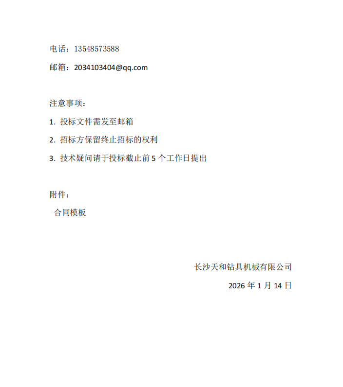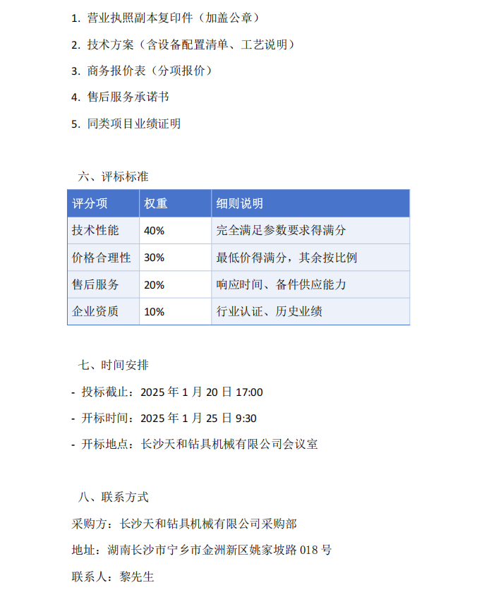 长沙天和钻具机械有限公司设备招标文件数控车床采购项目