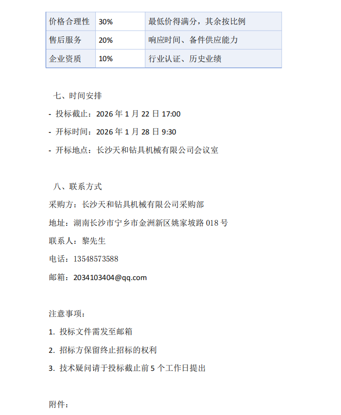长沙天和钻具机械有限公司设备采购招标文件(井式炉)